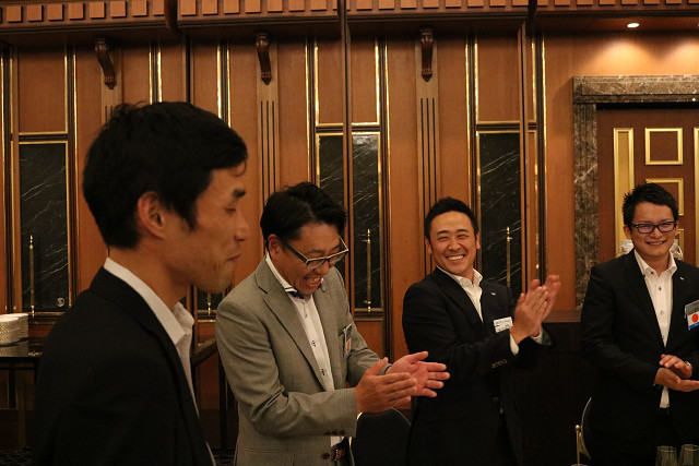 そして各会員会議所の新入会員の登壇も行われ、参加している会員に紹介されるのが恒例の行事となっております。さらに例会の中盤は夏川立也先輩をお呼びいたしましての講師講演会となりました。ユニークな経歴を持つ夏川先輩ならではの観点から、リーダーシップやひとづくりに対するコミュニケーションの力についてご講演いただきました。まず最初に笑う練習ですが、各会員会議所会員とも笑顔が不自然な様子。しかしながら今回は参加者が講演を聴くだけでなく、実践する参加型の講演となり各会員会議所会員の交流も次第に深まりました。最後は公益社団法人姫路青年会議所の竹中理事長が総評を行い年に一回の合同例会も無事に終了いたしました。