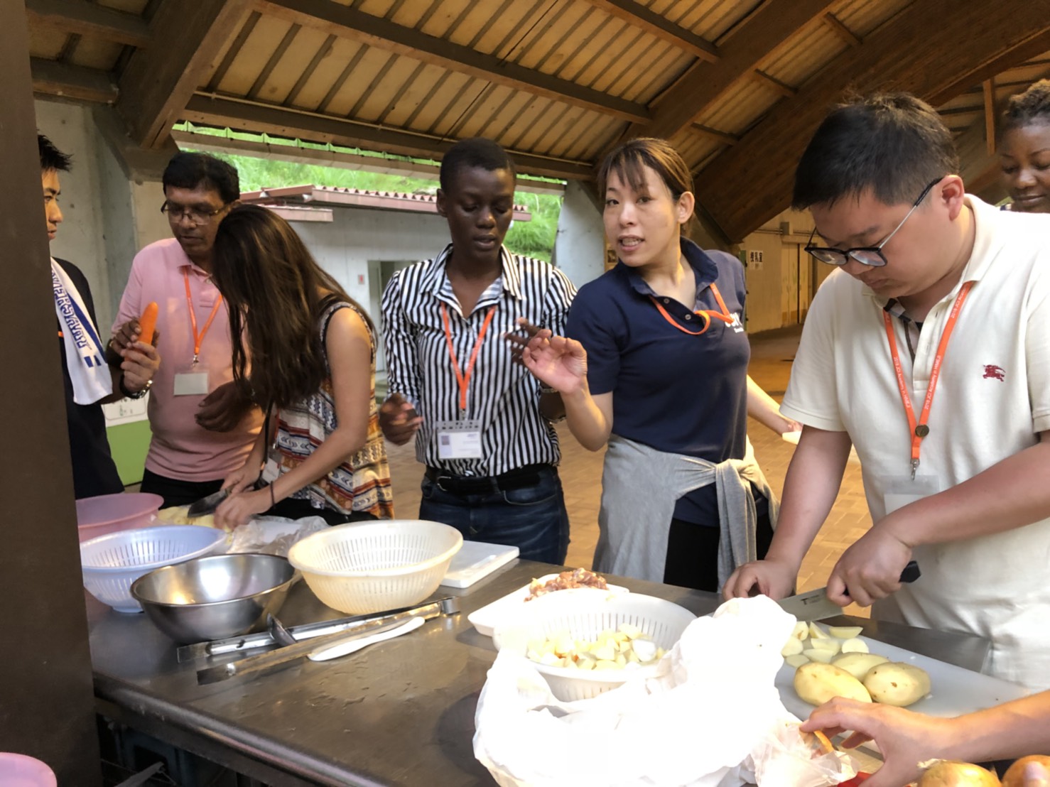 In the evening, we made curry rice with each team, held a discussion with bonfires, and challenged various challenges.