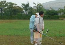 8月26日(日)雨天にもかかわらず、事業当日に駐車場として使う予定の空き地の草刈を早朝から行ってました。