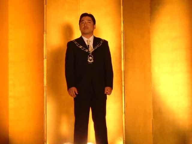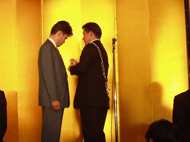 糴川理事長の力強い挨拶で本年度がついにスタートを切りました。また新入会員のみなさんも理事長よりJCバッジを襟につけてもらい晴れて仲間入りを果たしました。