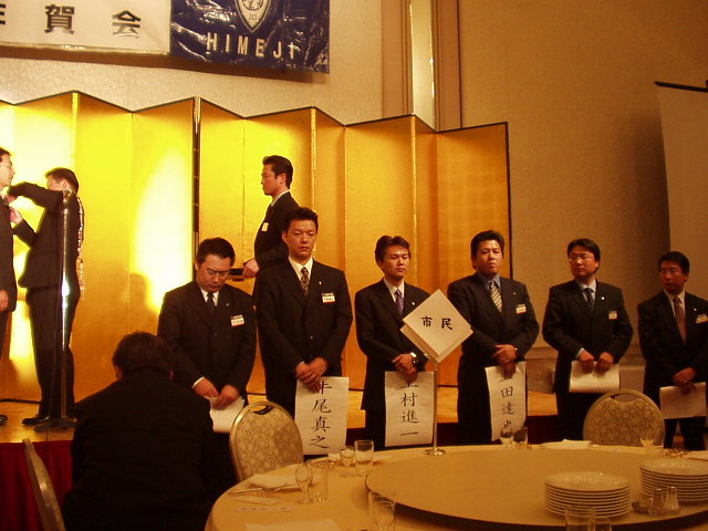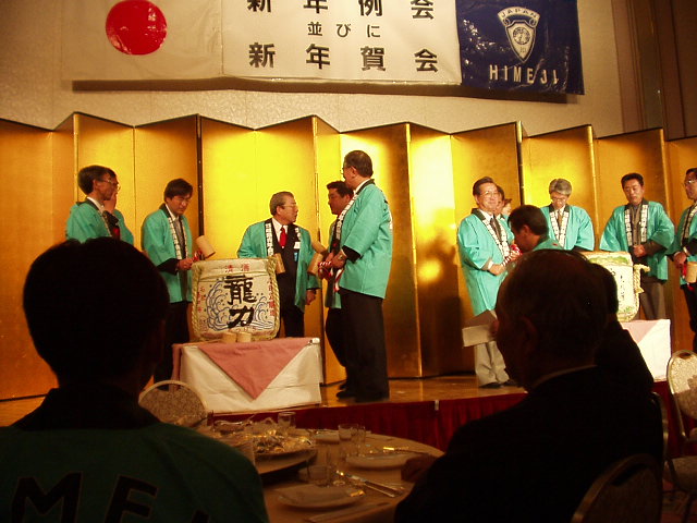 新年賀会では堀川姫路市長、芝原家島町長、馬場中播磨県民局長、米田姫路商工会議所会頭をお招きし盛大に行われました。