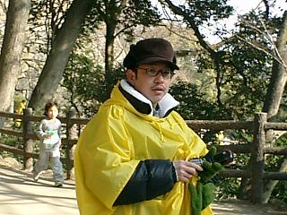 ポンチョが誕生日プレゼントに なってしまいご満悦の糴川理事長。 スーツ以上に似合うこの姿は涙さえ誘う… 上の写真と同じ姿勢の赤鹿室長…笑 呼吸はしてますかーぁっ? |