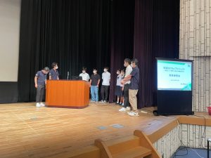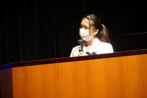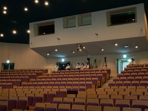 発表当日を想定し、実際に舞台上で発表練習を行いました。